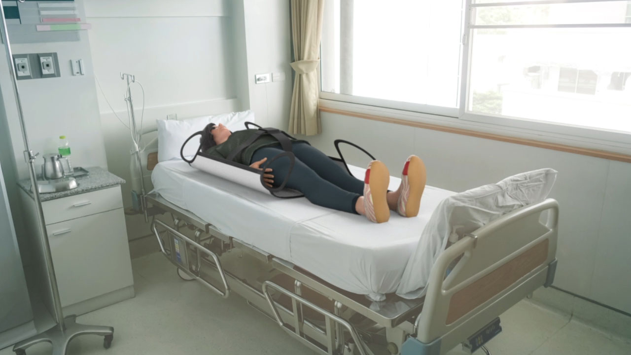 A no-lift moving aid that promotes the safe manual transferring of patients.