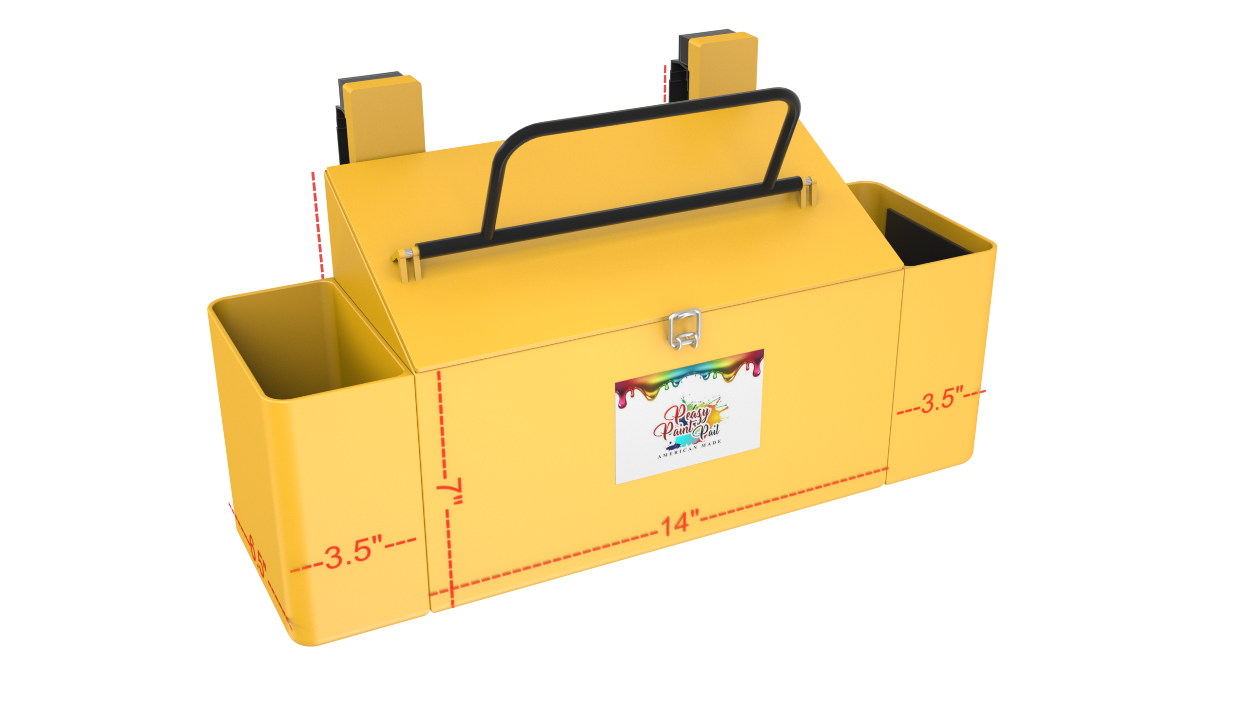 Inventor Melia Welch of Arnold, MO has created a paint bucket and implement holder that can be supported on a ladder for convenience and safety.When painting, it is important to have the proper materials at hand. A painter must move around to different locations, including different vertical heights, all while carrying around their supplies. This can quickly become problematic when trying to access everything, especially when the person painting is at an elevated position, such as on a ladder. As a painter, her main concern is always her safety and the safety of her company. There have been paint spills that happened due to not having a proper setup for exterior work. Plus having to constantly climb up and down a ladder presents a safety risk. She just knew there had to be a better way. In turn, she was inspired to develop the Peazy Paint Pail!The invention features dual compartments for two different types of paint and removable clips. A magnet can retain a painting implement, such as a paint brush or roller. Simply open a lid and pour the paint. You will then shut the lid and attach the pail to the ladder with the clipping mechanism. You are then ready to take your pail up the ladder!This is not just any paint bucket. The Peazy Paint Pail is going to revive the painting industry! Want to learn more? Be the first to contact us NOW for additional information or for manufacturing, retail, wholesale, distribution, or licensing opportunities!