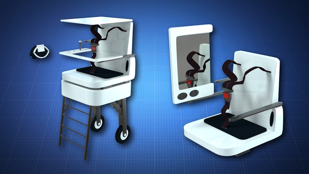 Inventor Angelica Jordan of Dorchester, MA has created a child seat system that is capable of changing into different forms including a car seat, highchair, climbing apparatus, and a stroller!