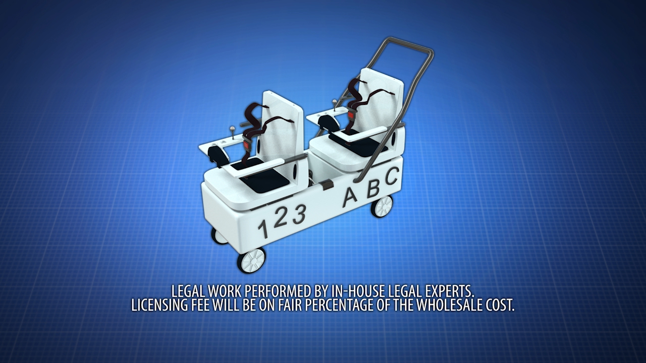 As a mother of five, Inventor Jordan was inspired by her little ones. She was always looking for ways to keep them entertained. Her children preferred bicycles, her tablet, or her phone. In addition, they always found a creative way to use their things such as flipping them over. In turn, Inventor Jordan created the Pedal Operated Car Seat and Stroller!