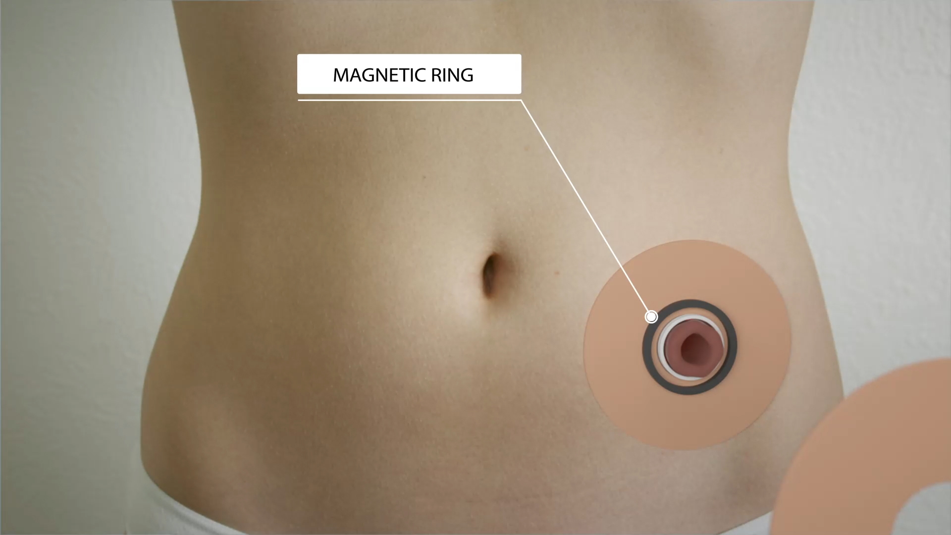 How does the Permanent Ostomy Wafer work? First, an encompassing stoma flange is surgically placed around the stoma. Then, a medical professional places a magnetic ring on the skin of the patient. Next, the medical professional secures the ring around the stoma using a sutured sheet of artificial skin. Finally, the patient places an ostomy bag containing a thin sheet of ferromagnetic metal onto the artificial skin. The magnetic force secures the bag in place - no adhesives required. With this invention, the patient is free from adhesive-related problems like leaks and skin irritation.