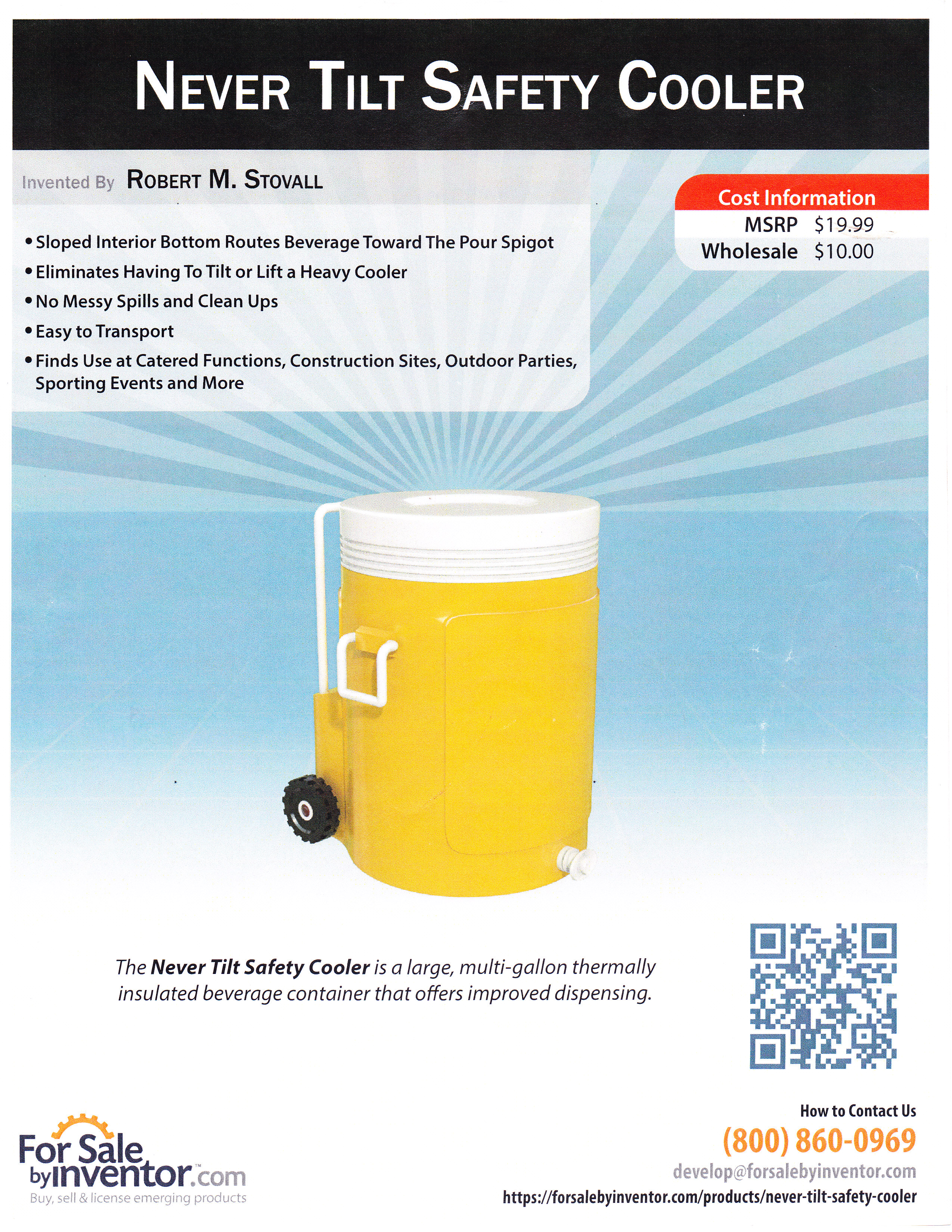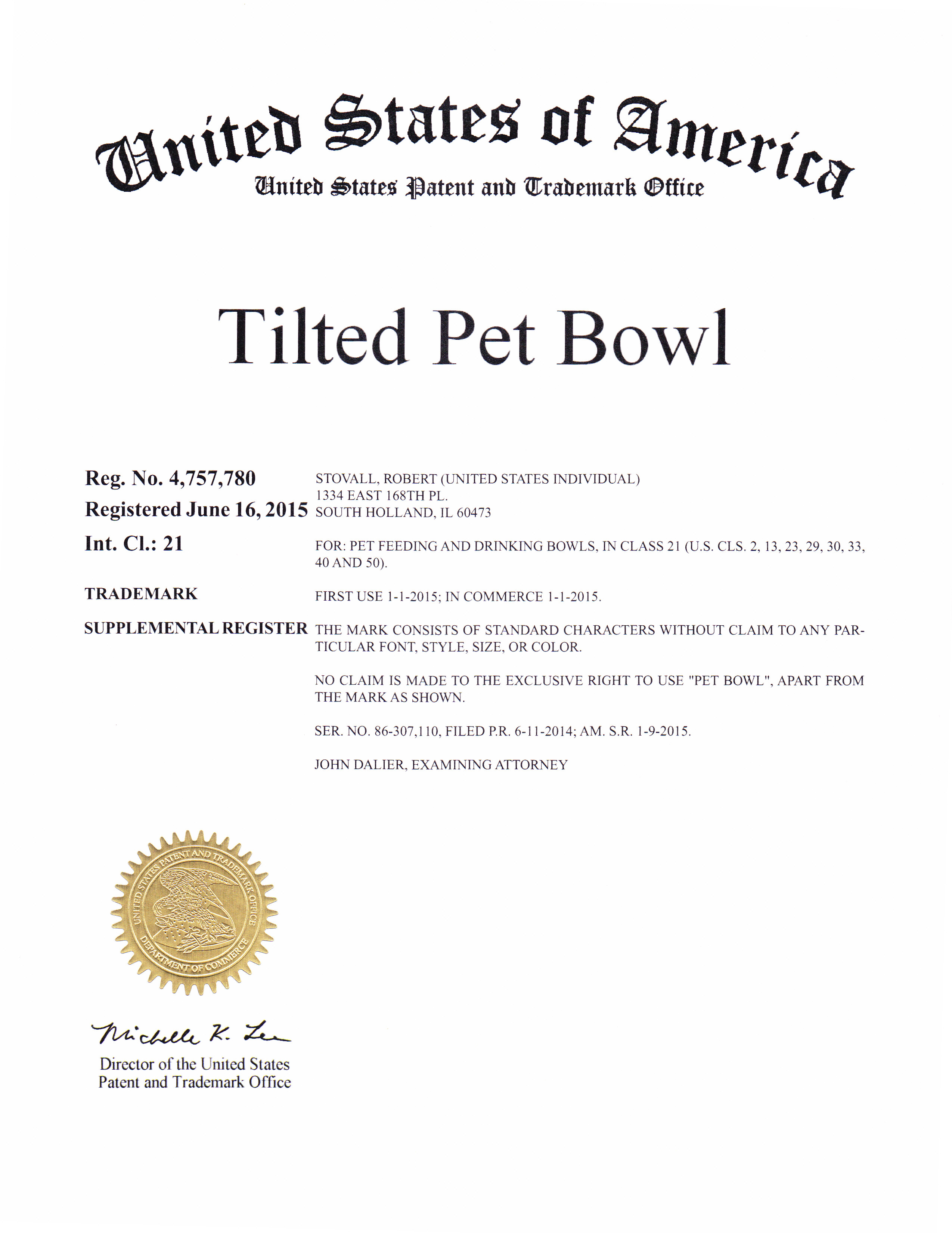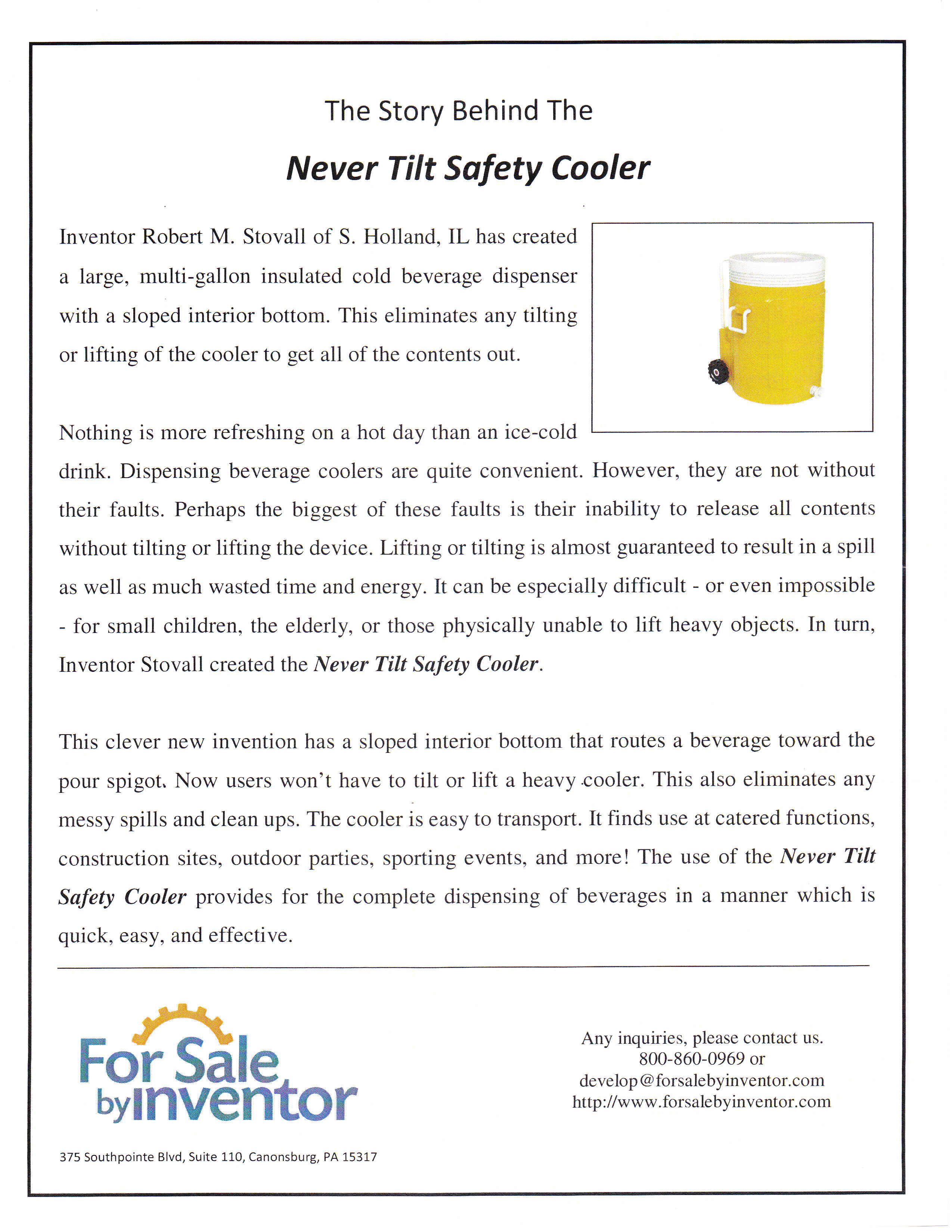 Inventor Robert M. Stovall of S. Holland, IL has created a pet bowl for food or water with an inclined bottom surface. It allows for complete consumption of a bowls contents.