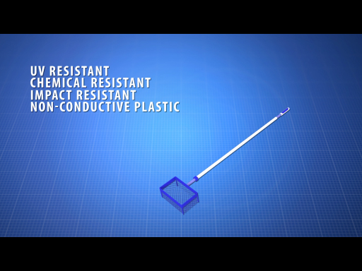 The Plastic Pool Man Pole is a cleaning pole made from non-conductive plastic that is intended to reduce lightning strike danger while cleaning swimming pools.