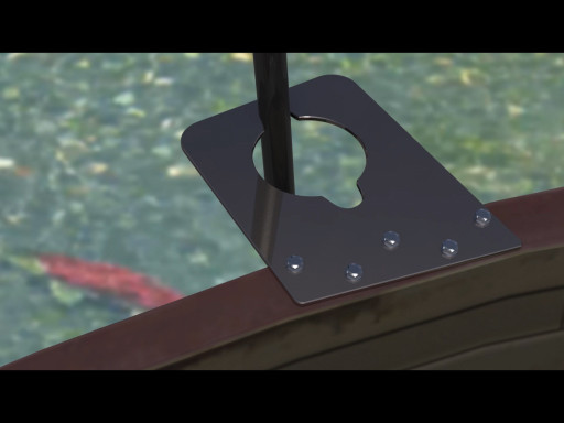 This clever new invention features a plate that attaches to the front of a boat and one or both sides of the outboard motor. U-shaped notches hold push poles in place. The invention prevents fish from being alerted. It allows for silent movement of a boat. Its a must-have for shallow water fishing!