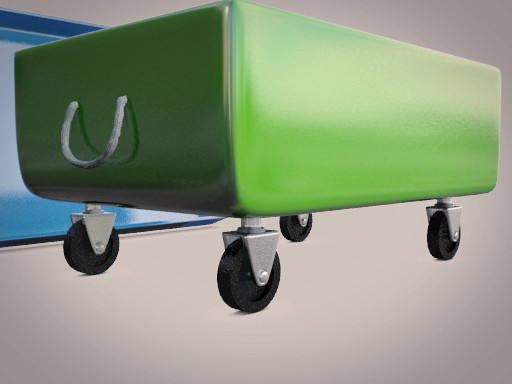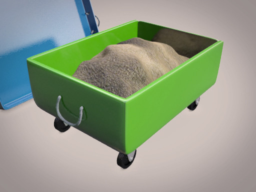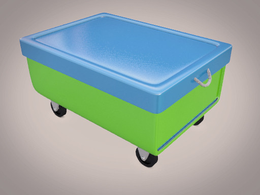 The invention is a childs sandbox with wheels and other enhancements to allow for easy movement.