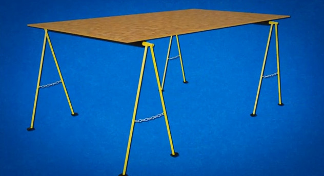 Sawhorses are found on virtually every construction site. They are also often found in residential applications where they are used to temporarily hold large objects at waist level for ease of access. They are easily configurable with regards to width and can be pressed into service for almost any need. However, sawhorses are generally large and require a somewhat large storage space when not in use, even if stacked together. This same disadvantage also makes it difficult to transport sawhorses in trucks and work trailers. Inventor Ardoin has created a means by which the multiple benefits and features of sawhorses can be utilized without the disadvantages of storage and transportation.