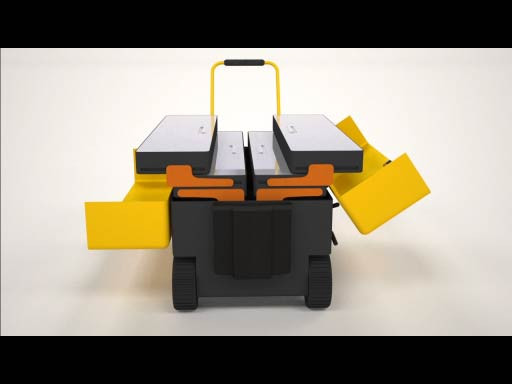 This clever new invention has a telescoping handle, folding trays, and front and rear tool pouches. It is impact resistant and has locking recessed caster wheels. The use of the Portable Tool Chest provides storage and organizational capabilities for all types of tools and supplies, both large and small, in a manner which is not only quick, easy, and effective, but improves productivity as well.