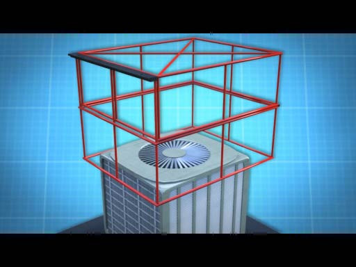 This clever new invention attached to the ground using angled iron straps, and has a locking hinge mechanism. It would be made of heavy gauge steel to guard against theft and to remain intact over time. Additionally, the invention features a built-in access panel for maintenance. The use of the Protective Cage for Air Conditioning Unit allows for increased security of outdoor HVAC equipment in a manner which is quick, easy, and effective.