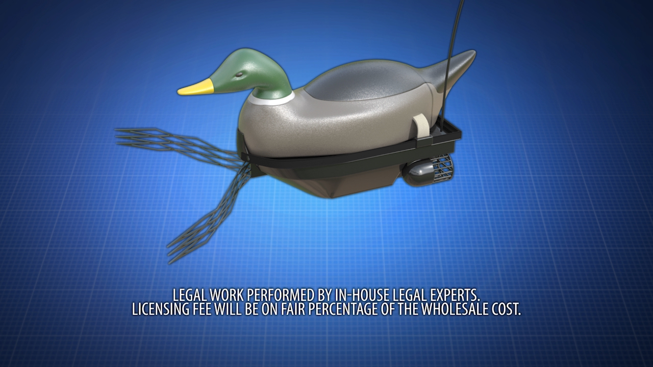 This clever new invention effectively retrieves downed waterfowl from bodies of water. A motorized propeller is driven by an internal battery. It has an on onboard receiver connected to an antenna. It is connected wirelessly to a remote transmitter in much the same manner as a remote controlled car. The invention offers speed control and direction control. A V-shaped retrieval net is located on the front of the decoy. It is used to catch and push downed birds or even other decoys back to the hunter who is on shore or in a boat. Whats more, it works from hundreds of yards away! Act now!