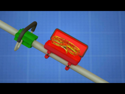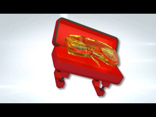 The Safety Eyeglass Case and Mounting Bracket is a storage case for safety glasses designed to mount to the shaft of a string style trimmer.