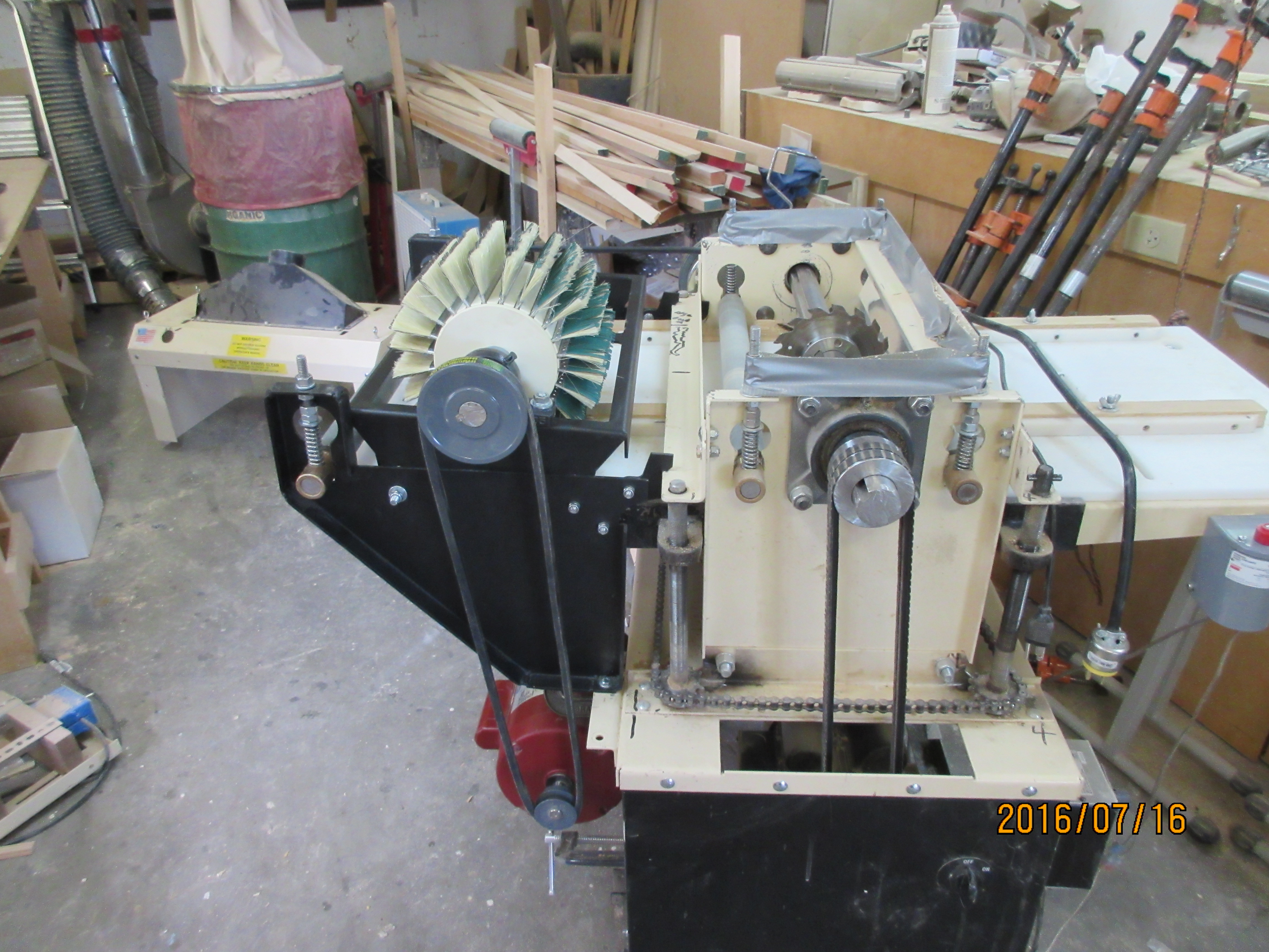 This clever new invention is a smart add-on for molding machines. It sands chatter marks out of wood trim/molding. It is easy on a users hands and works to create professional looking results. It is truly a must-have for the woodworking industry!