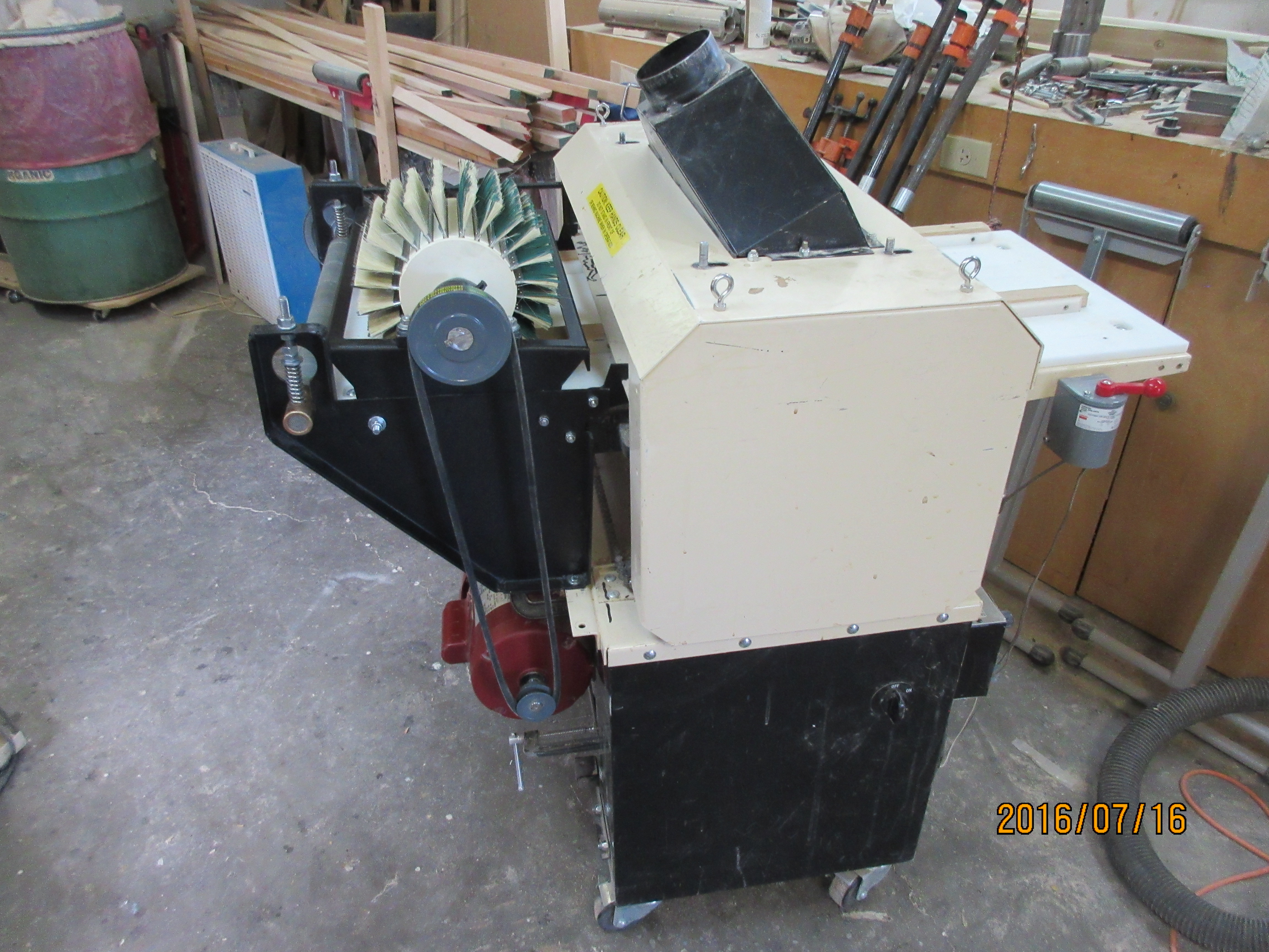 When operating machines, especially in woodworking or other areas where constant manipulation of the work product must be done in order to properly and aesthetically complete the work, it is useful to have adjustments or attachments that are easy to use. Inventor Grom was hand sanding the profile of 6,000 feet of molded trim and after a couple hours, his hand was really hurting. He knew that if he was going to keep working in his shop and producing a high quality product, he would have to go about his work differently. This inspired him to develop a different means of sanding out chatter marks. In turn, he created the Sanding Tool for Molding Machine!