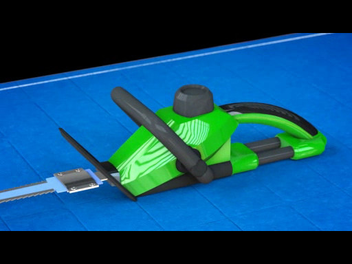 Inventor Roger M. Sis of Bellingham, MN has designed a portable motorized reciprocating saw with a dual edge blade specifically designed for trimming sprayed urethane foam used for insulating purposes.