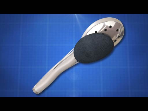 The Shower Wand with Scrub Brush is a handheld shower head with an integral deployable brush for cleaning ones back and other hard to reach body areas.