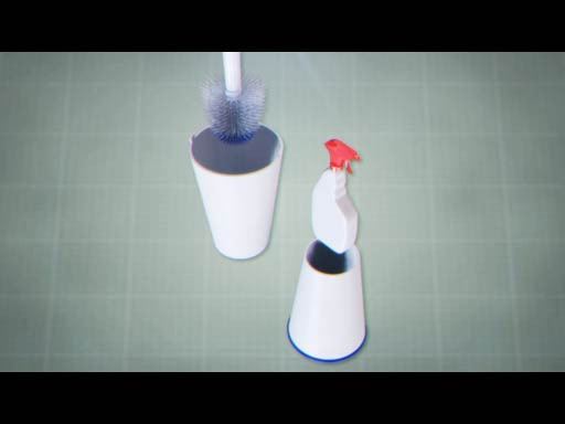 Simplastic is an hourglass shaped cylinder for storage of toiletbowl brushes as well as cleaning chemicals.