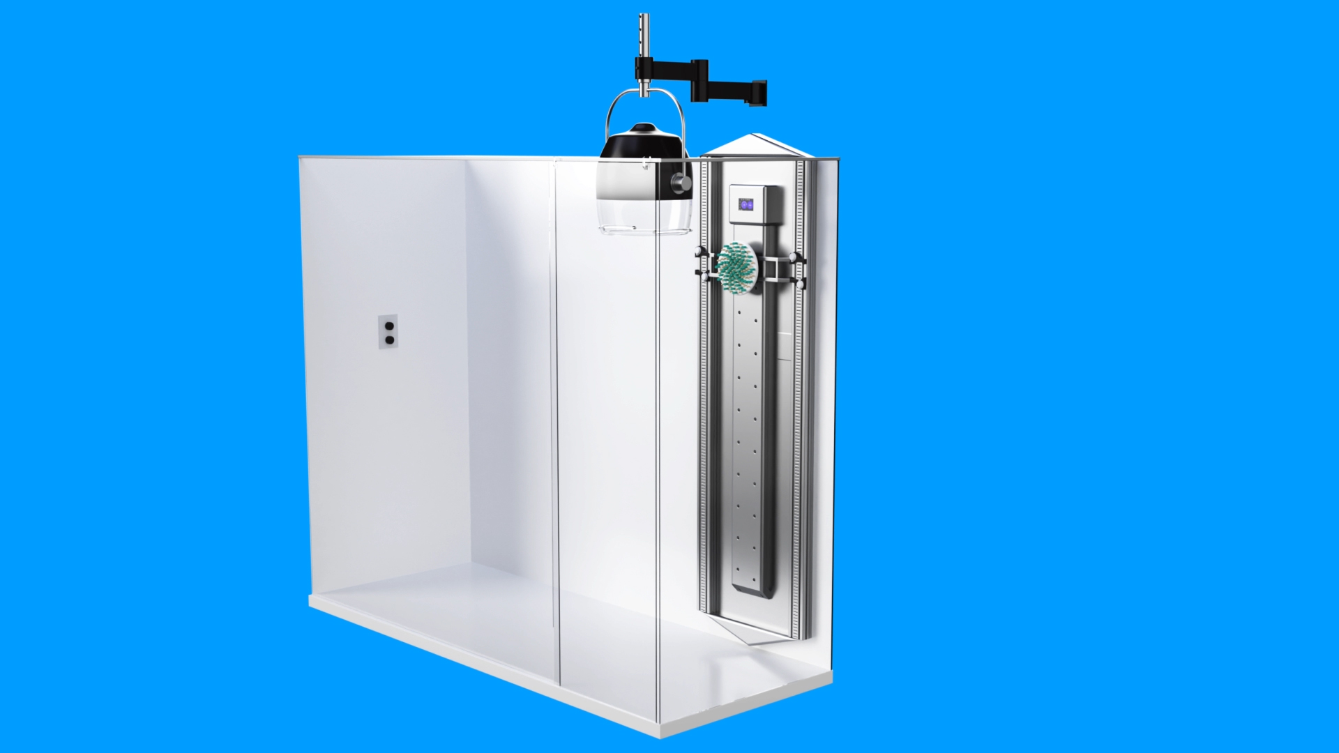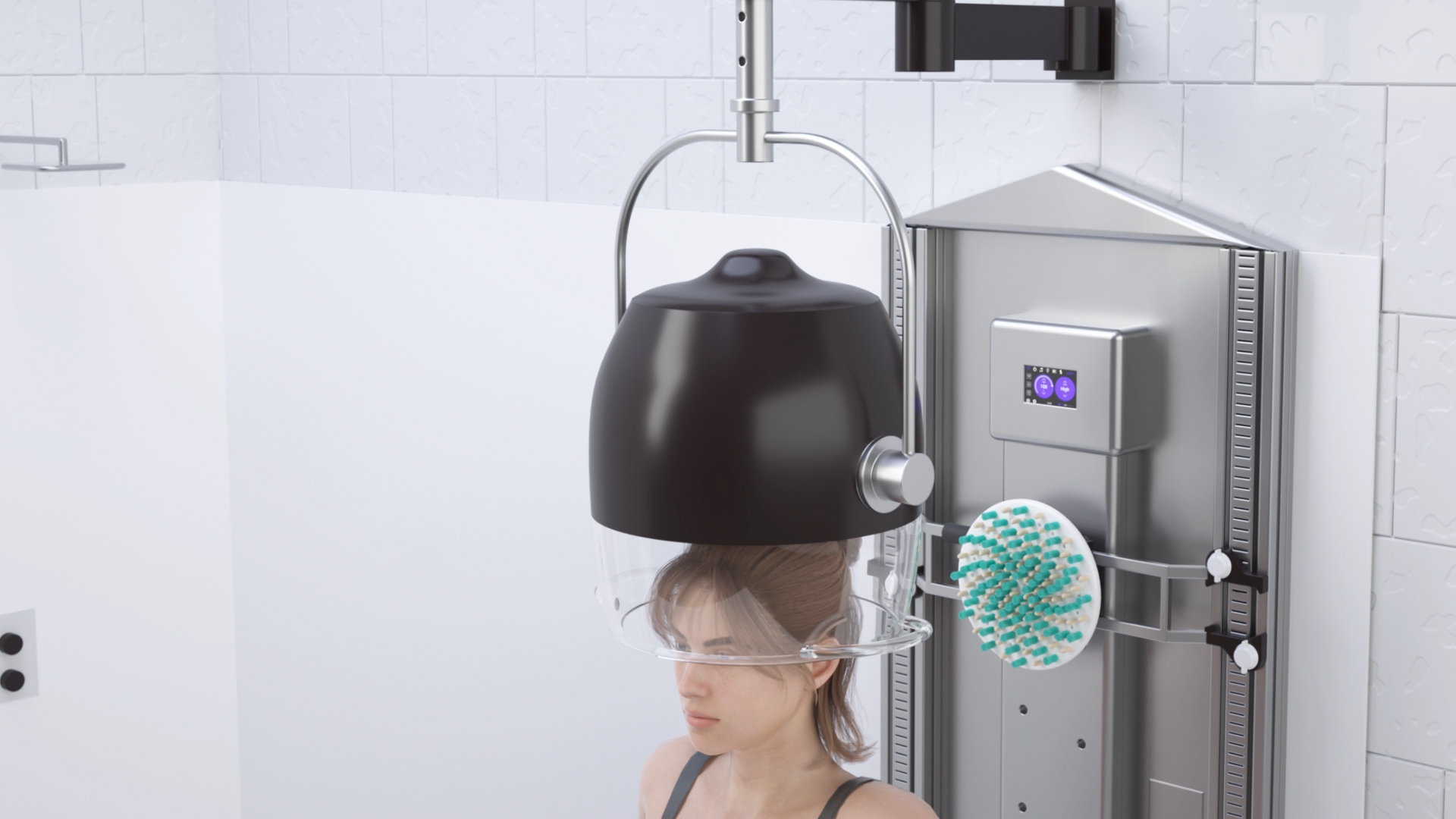 Discover Tech Inc. has developed an automated body drying system that also incorporates a lotion applicator with massage. Now you can have a spa-like experience right in your own bathroom! After a busy day, a hot bath or shower followed by a quick massage can really promote quality sleep. Some like to turn on the heater after getting out of the shower. Applying lotion under hot air always provides relaxation. However, the process takes multiple steps between drying your hair, body, and feet with a towel before body lotion can be applied. Reaching all areas of the body can be a struggle, too. Body massage after a shower is a very popular spa service, but due to the high cost and inconvenience, many people forgo the spa. With all of this in mind, Discover Tech Inc. created an at-home body drying system with numerous spa-like enhancements. The invention features hot air vents along both sides and back of the fixture to dry your body. A salon-style hairdryer will dry and style your hair after a bath or shower no towel necessary. You can adjust the fan speed and temperature for maximum comfort. An articulating brush head moves up and down and side-to-side while dispensing lotions, essential oils, or even sunscreen to your whole body, including your back. Replace the brush with a soft pad for lotion or oil. A massage head provides an instant post-shower massage, or there is a scrubber to exfoliate. Control one, two, or all three functions through an intuitive touch screen controller.Want to learn more about Spa-Lux? Be the first to contact us NOW for additional information or for manufacturing, retail, wholesale, distribution, or licensing opportunities!
