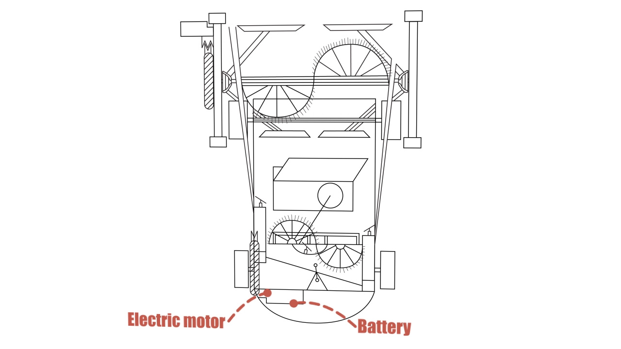 A user will simply sit on the seat and pedal the front S-crank. The pedal motion is then translated via the front axle and rear axle to the electric generators. Electricity produced by the generators can be utilized to either recharge the battery, thereby saving energy for later use, or to operate the electric motor. When operating the electric motor, the motor chain will transmit torque to the front axle, thereby rotating the front wheels. Before generating large amounts of power, torque should be switched to the rear wheels and the wheels should be propped on generator stands. Power will then be gained without pedaling, for energy or for storage automatically. When driven, a user will simply step on the accelerator pedal, steer, or break. The invention can be set up and enjoyed in any location where pedal operated vehicles are permitted.