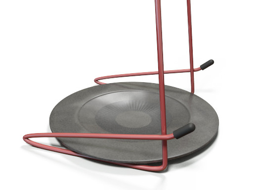 Inventors Prevost developed this clever innovation, which is an apparatus designed to hold the lids of pots or pans during cooking that also features a place to rest cooking utensils. The invention is approximately thirteen inches tall and is made of a steel rod that is formed into a triangular shape with a rounded loop on top. The base of the triangle is formed with two rearward-facing support arms, formed at an angle, which allow the upper support to tilt back approximately 25-30. The bottom of the base is sized to hold a six-inch plastic drip plate. Two small support hooks are provided near the base of the invention to hold the lid in an upright, but angled configuration. As such, any condensation, grease or oil that drips off of the lid will simply fall onto the drip plate. The drip plate can also be used to hold spoons, spatulas and other cooking utensils that are used in the cooking process. The use of the Stand and Drip Pan for Cooking Accessories enhances convenience and reduces messes when cooking with pots and pans.