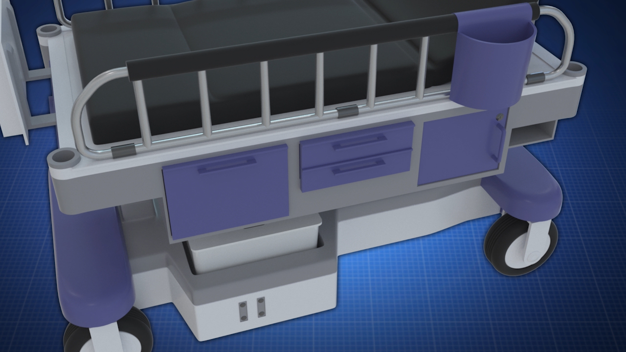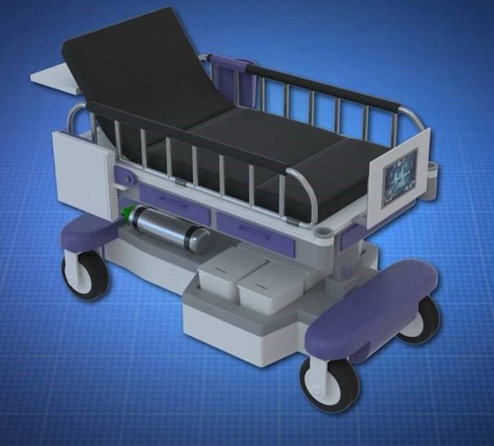 Traditional emergency stretchers are used for transporting patients but this clever new product has been changed to become a standalone unit. It provides the same comfort as before with new ideas to become a smart bed! Now medical professionals could even assist patients in a hallway if needed.
