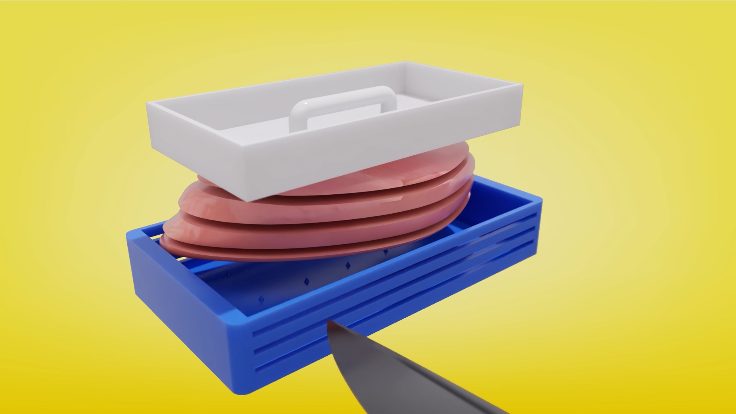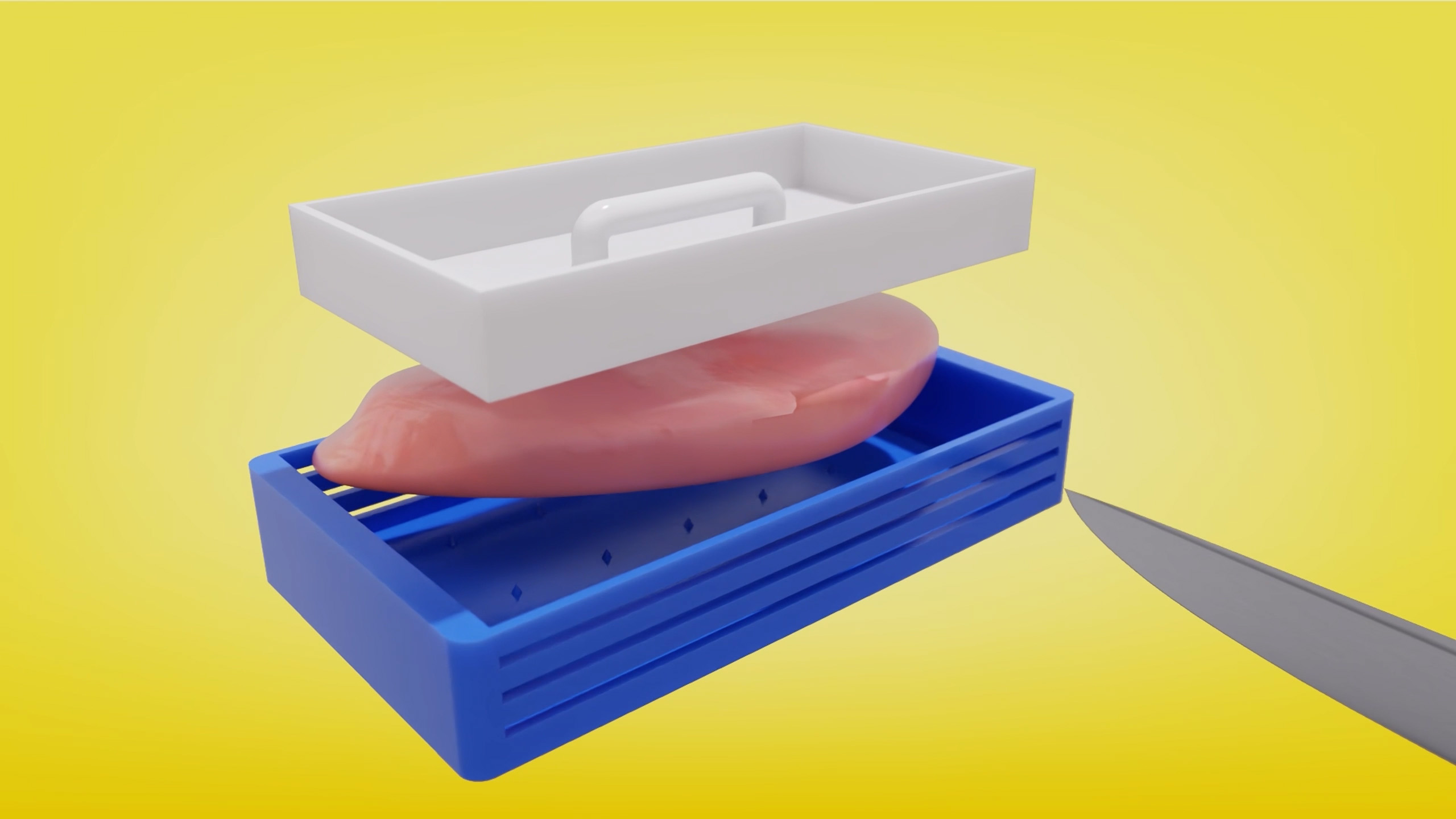 An innovative new cutting aid for cutting items like chicken breast into thin slices.
