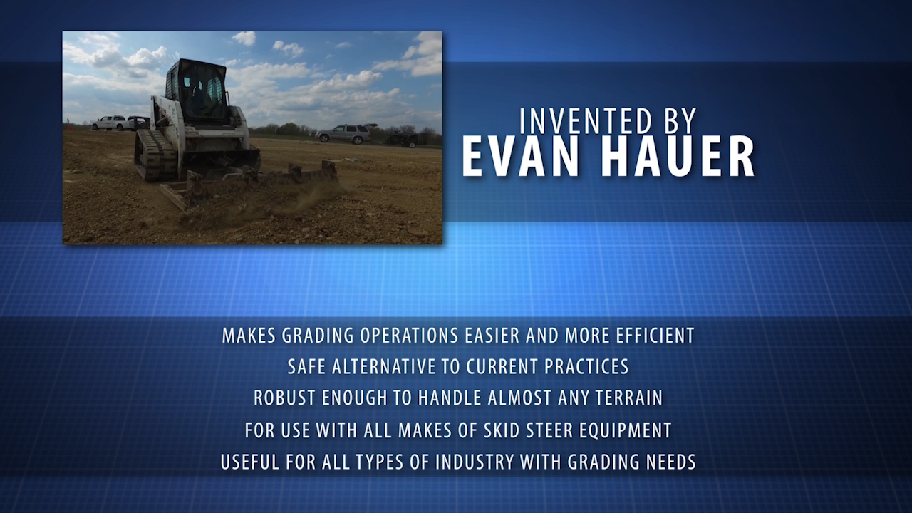 Inventor Evan Hauer, a second generation turf contractor from Moscow Mills, MO has created an attachment for a skid steer loader to assist in grading operations.