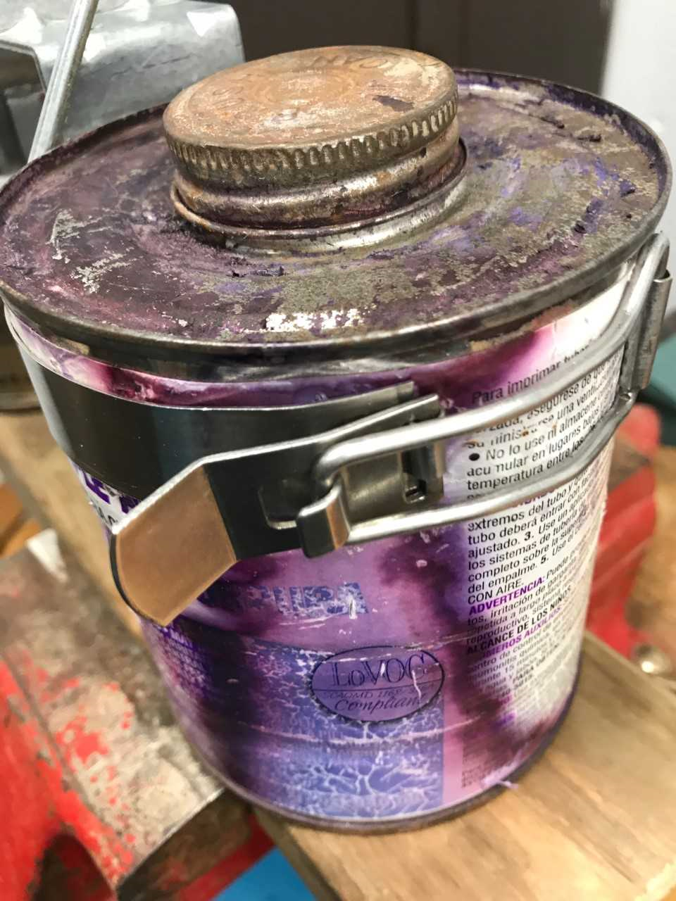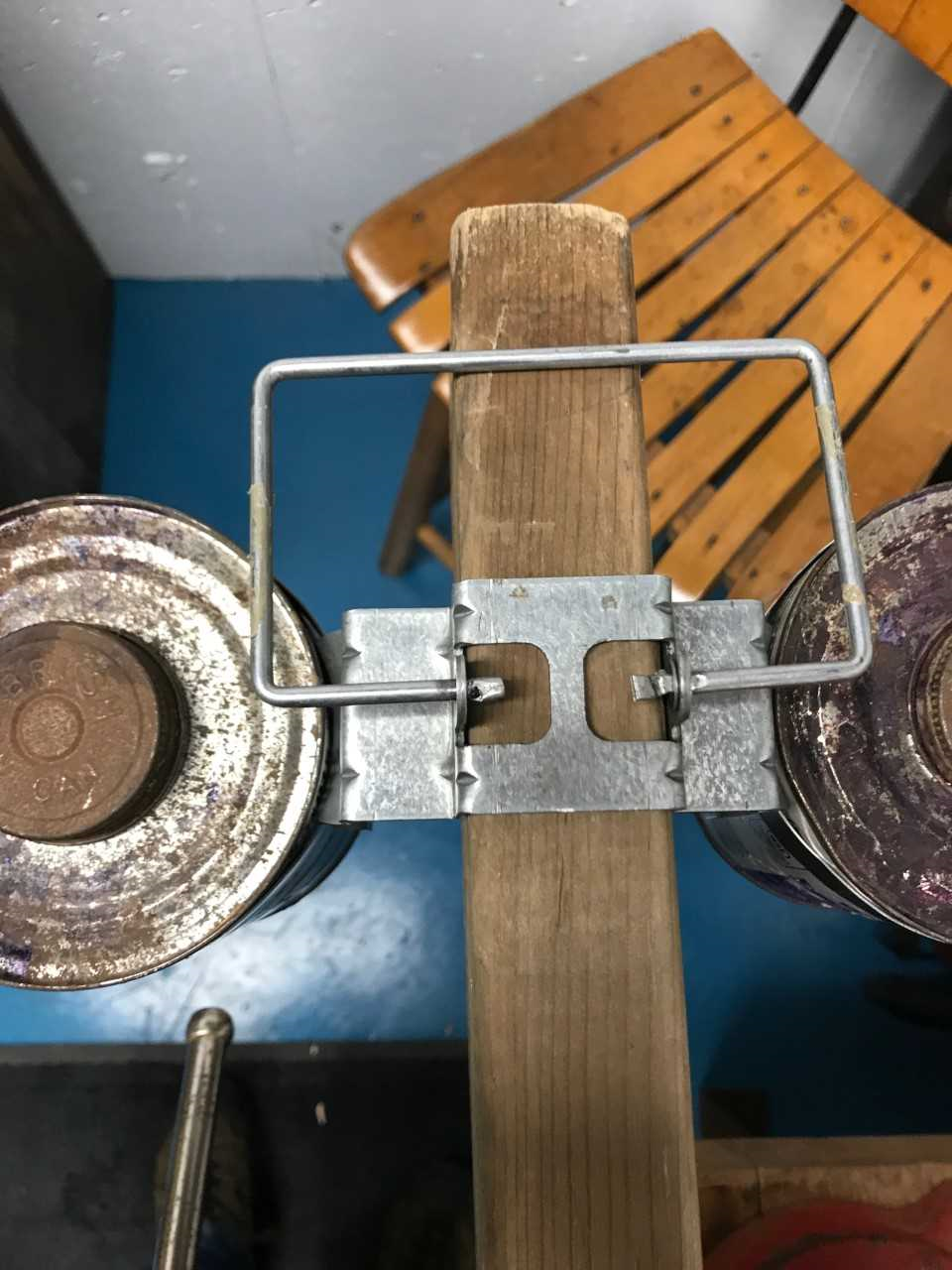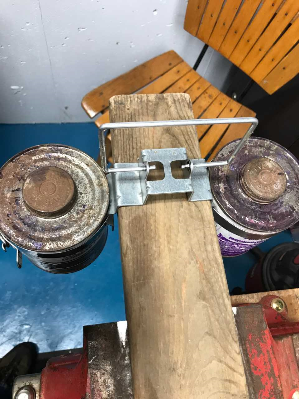 The invention is portable and easy to use. It is designed to fit over the top of rafters, the top plate of walls, and the steps of industry ladders. The handle allows for safe carry and fits properly on the front hook of all industry ladders. The locking bands are made to fit 32 oz. cans of glue and primer that are primarily used by plumbers using solvent welding, PVC, CPVC, etc. The band locking system makes exchanging cans safer and easier. It is more stable, more productive, and causes less waste.