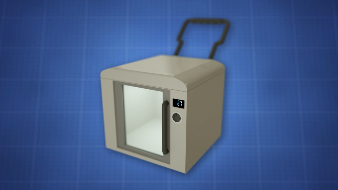 This clever new invention is for use at home, on the road, or at work. It is great for vacations, hunting, and camping. It is operated via an internal removable battery pack. It recharges in 30 minutes in a separate recharger. The device is provided with a unit mounted handle and separate carrying case for easy transportation. The use of The Mini Mike provides the convenience of a conventional microwave oven while away from the kitchen.