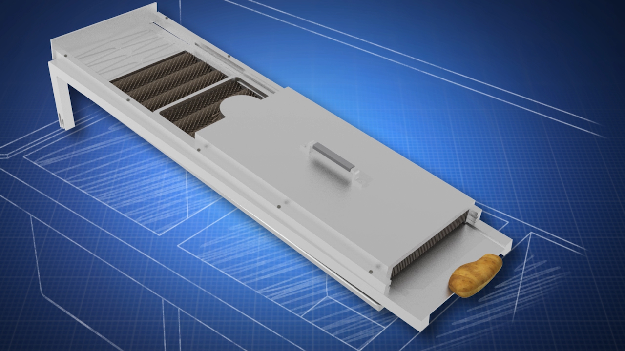 Potatoes are used for breakfasts, lunches, and dinners. However, first, they must be rigorously cleaned as the first part of their preparation. Cleaning a few potatoes for dinner at home is not a big burden but it is a significant task for those who prepare many potatoes in a restaurant. A prep cook may spend hours cleaning hundreds of potatoes while hunched over a sink in a position that can cause pain in the lower back. Additionally, the labor associated with this cleaning drives up the cost of food for everyone.