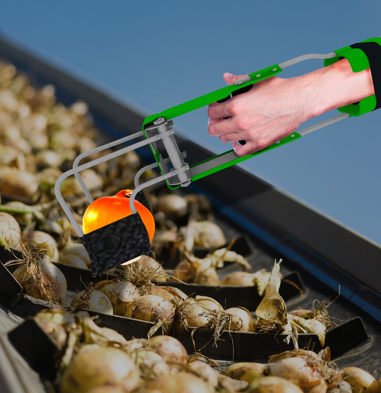 This clever new patented invention consists of a grip, the gear assembly, the frame, support extensions, and the grasping arms. It was created to keep the wrist in a neutral position instead of an awkward angle. It distributes the weight of the material across the entire forearm and adds stability which is especially vital when lifting heavy items. It also removes the risks associated with the manipulation of materials around hazardous machinery or environments.