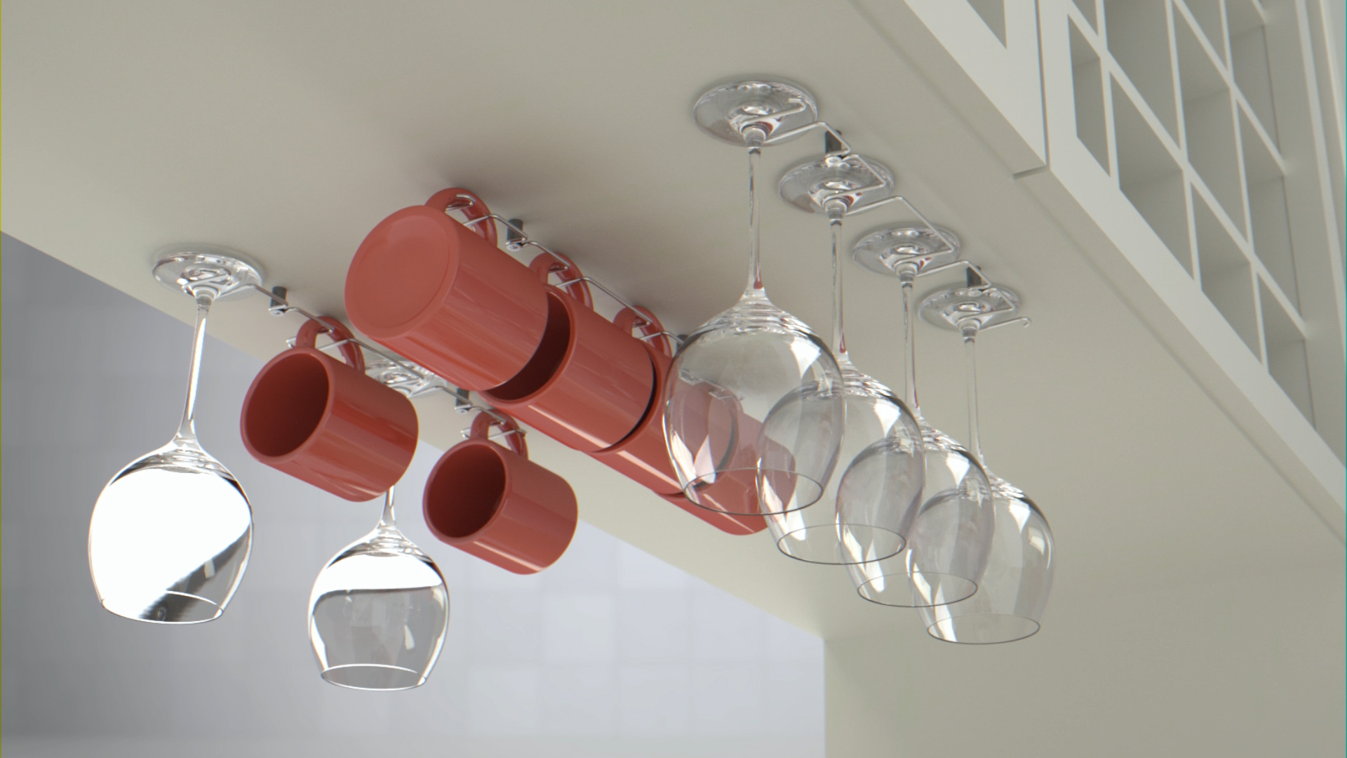A new storage solution for wineglasses and mugs that can never seem to find a place on the shelf.