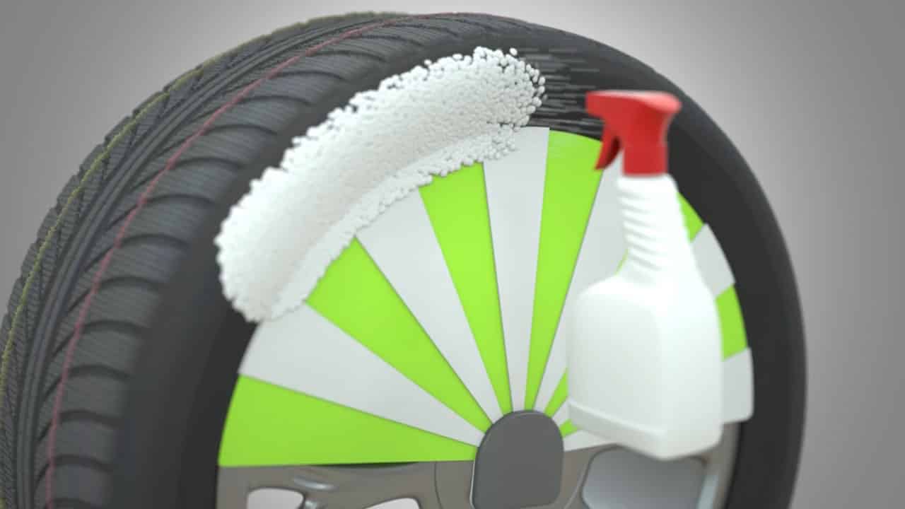 Adjustable Shield Covers Rims While Tire Cleaner or Protectant is Applied