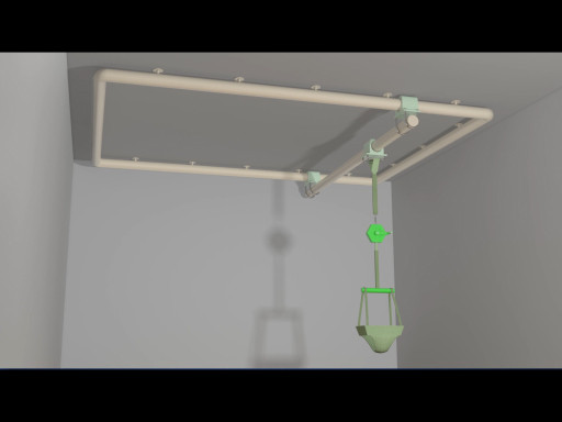 The Track-Mounted Ambulatory Assist Mechanism is an apparatus to assist toddlers who are learning how to walk.