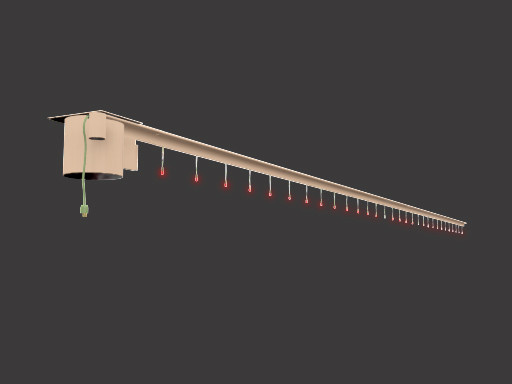 This invention is an outdoor holiday light set that is attached to a motorized track for easy deployment of lights while standing on the ground.