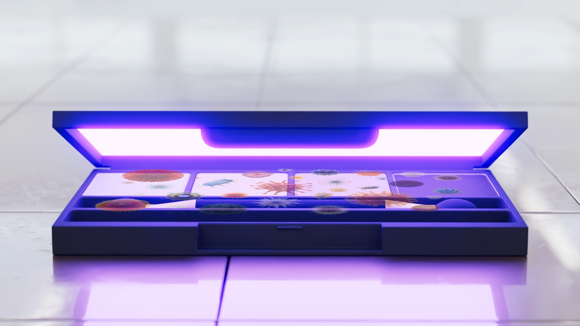 A compact makeup case with automatic UV light technology to keep your cosmetics clean and hygienic.