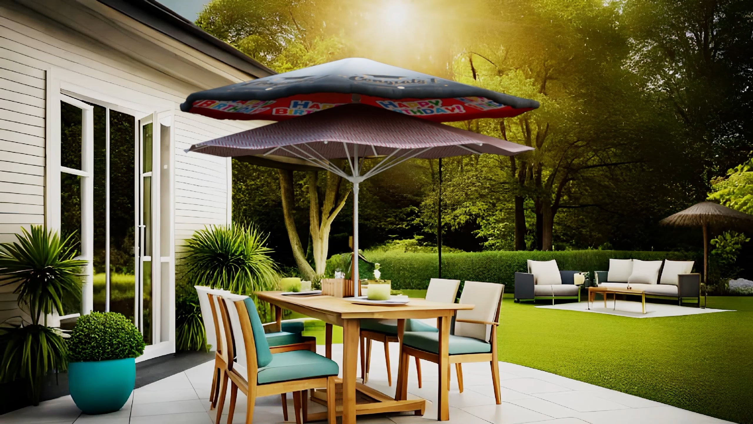 Inventors John and Brenda Hufford of Wichita, KS have developed an umbrella cover that allows you to "dress up" your standard canvas patio umbrella for any occasion!What began as a simple idea of adding Christmas curtains to an outdoor umbrella has evolved into a new invention thats ready to hit the market! The Umbrella Dress is designed to transform your standard canvas patio umbrella, offering a stylish and versatile way to enhance your outdoor space.With the Umbrella Dress, you can easily decorate your umbrella for any occasion, whether it is a birthday party, graduation, anniversary, or even a backyard fantasy football draft. This innovative accessory allows you to customize your umbrella to perfectly match the event, with endless possibilities for personalization! Companies such as hotels and restaurants might even consider ordering ones for their business.But how does it work? Designed to fit perfectly over your current umbrella fabric, the Umbrella Dress includes an elastic opening at the top to fit any aperture. It overlaps and secures with an elastic band underneath the existing fabric, providing stability, even during bad weather. It is as simple as putting a cover on your mattress! The invention is also reversible, so you get two dresses in one!Want to learn more? Be the first to contact us NOW for additional information or for manufacturing, retail, wholesale, distribution, or licensing opportunities!