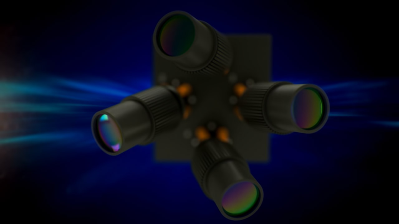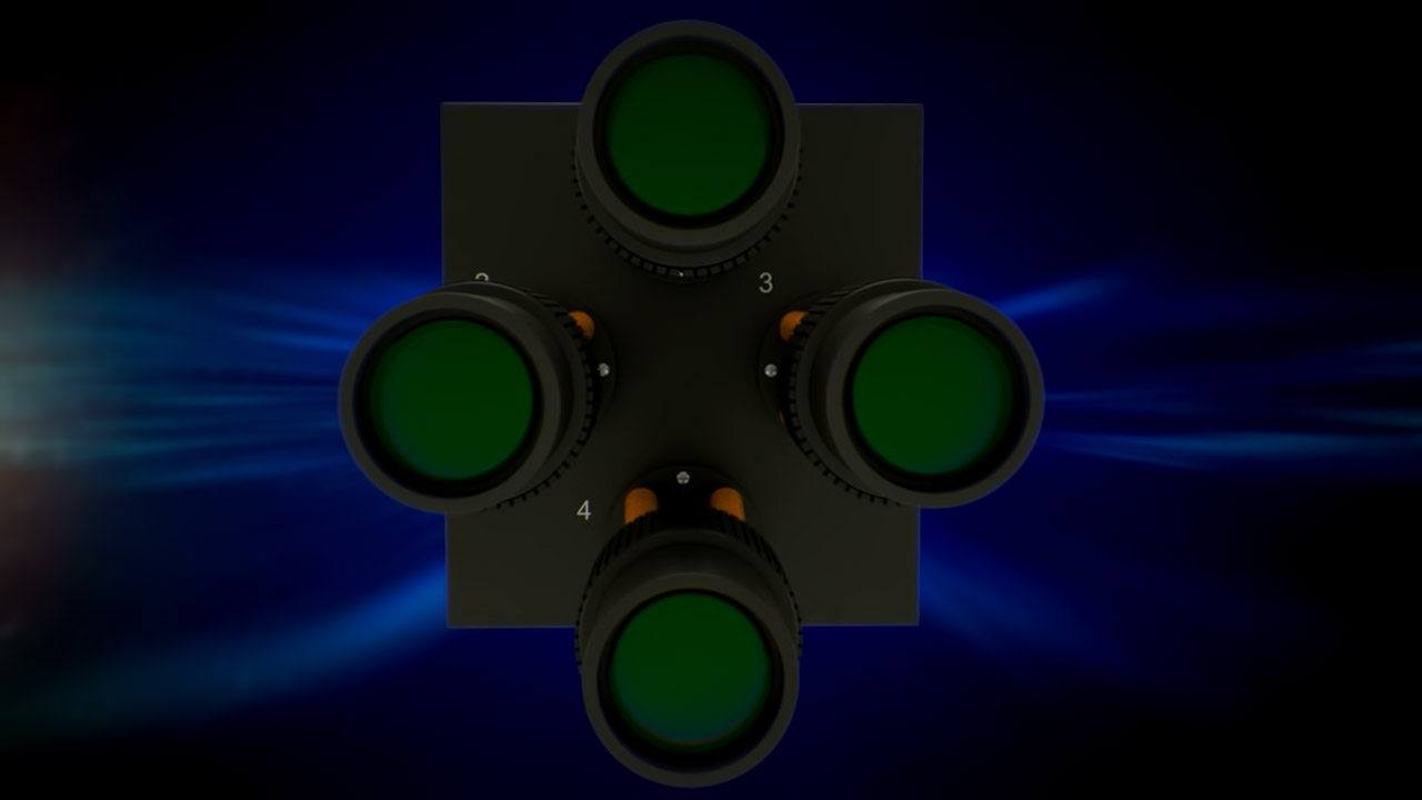 The Video Camera with Multiple Data Input is a multiple lens video camera that allows objects to be viewed at the same time from different angles.