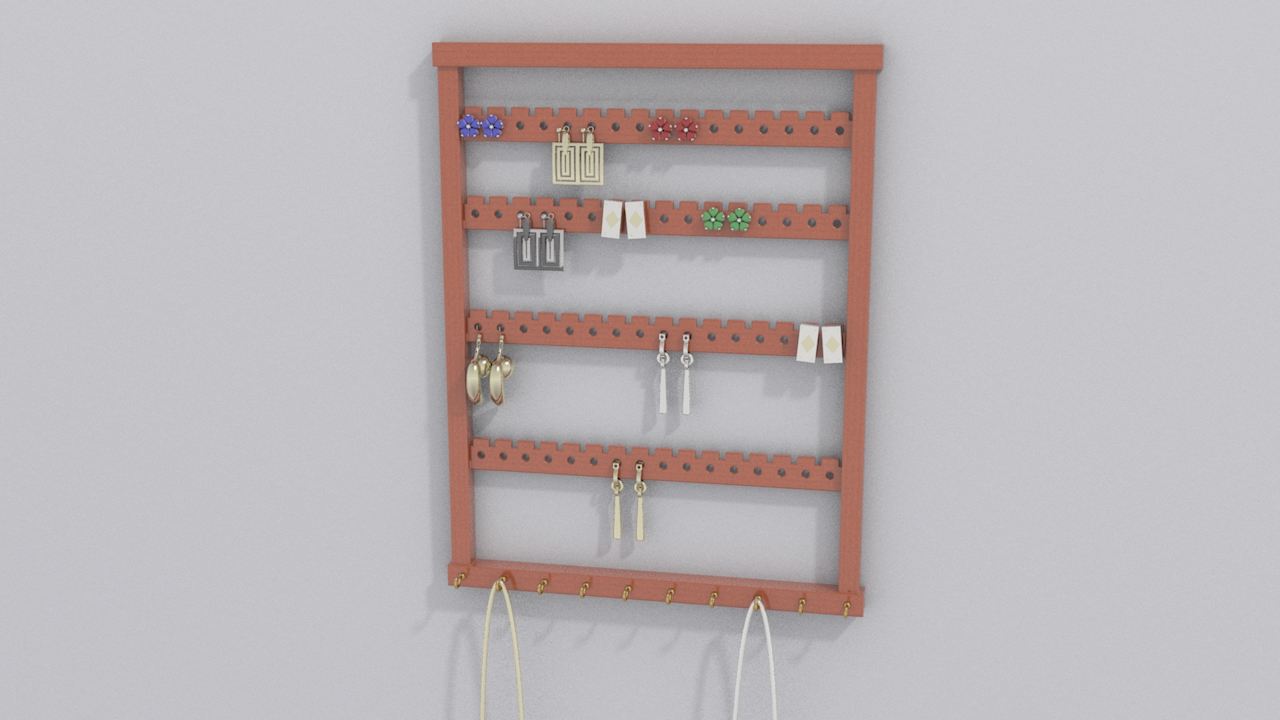 Everyone seems to be in a hurry in the mornings. Things that need to be completed before a person can leave often are done in rush-mode. While getting ready for the day, tangled necklaces and misplaced jewelry items can definitely slow a person down. Its also very frustrating. Inventor Eberling knew there had to be a better way for his wife to easily locate desired pieces and accessorize an outfit. In turn, he created the Wall-Mounted Jewelry Display.