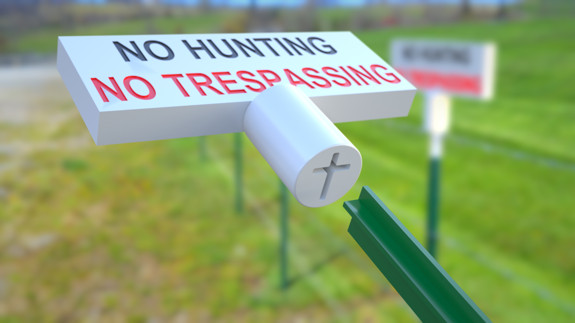 This clever new invention allows a sign to slip over a T-post. It is easy to install. Its long lasting and cost effective. The sign can read No Hunting - No Trespassing or whatever message a buyer would need. It is simple to manufacture.